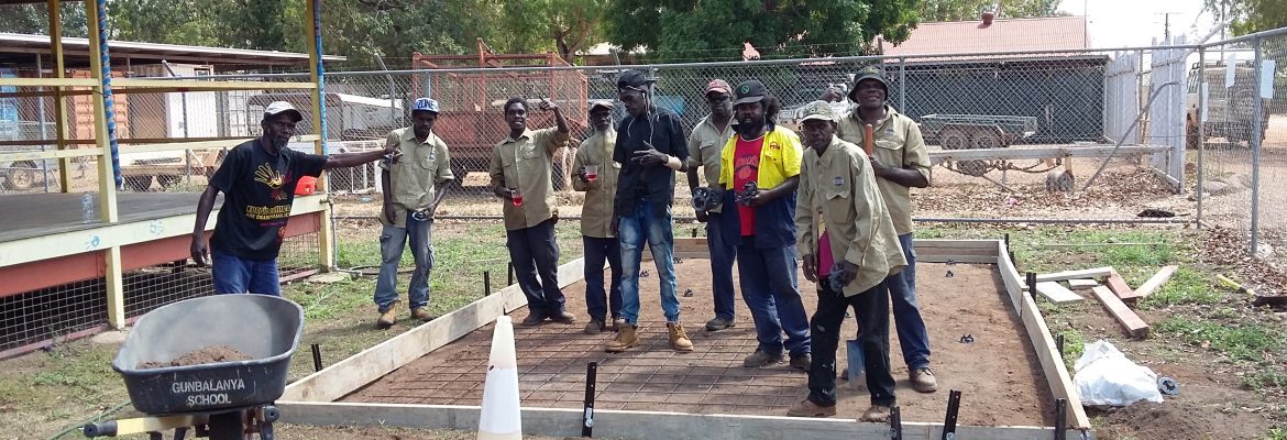 Our Gunbalanya work crew in the process of building a basketball play area for our local Youth Centre. This is one of the projects we will be doing at the centre to give young people a place to go and have fun. Keep an eye out for more updates and progress reports as we finish the build!